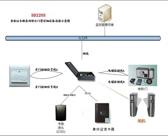 SD220S是我司自主研發(fā)的一款專(zhuān)門(mén)為各種需要身份證驗證開(kāi)門(mén)的場(chǎng)所設計的TCP/IP四門(mén)單向身份證門(mén)禁系統。系統自帶大容量存儲功能,50萬(wàn)身份證權限,50萬(wàn)身份證記錄,3萬(wàn)身份證完整信息存儲,支持讀取完整身份證信息(身份證號,照片,地址,出生日期等),同時(shí)可以100%鑒別身份證真假。系統可授權開(kāi)門(mén),也可不授權刷身份證即開(kāi)門(mén)。彌補市面上常見(jiàn)的密碼門(mén)禁、IC卡門(mén)禁、指紋門(mén)禁等存在密碼易泄露、IC卡易復制、指紋采集不方便等問(wèn)題。SD220S身份證門(mén)禁可以保存刷卡人所有身份證信息,刷卡時(shí)間,選配網(wǎng)絡(luò )監控功能,可做到刷身份證拍照,當發(fā)生安全事故時(shí)提供有力證據,進(jìn)一步加強了安全性和可靠性.